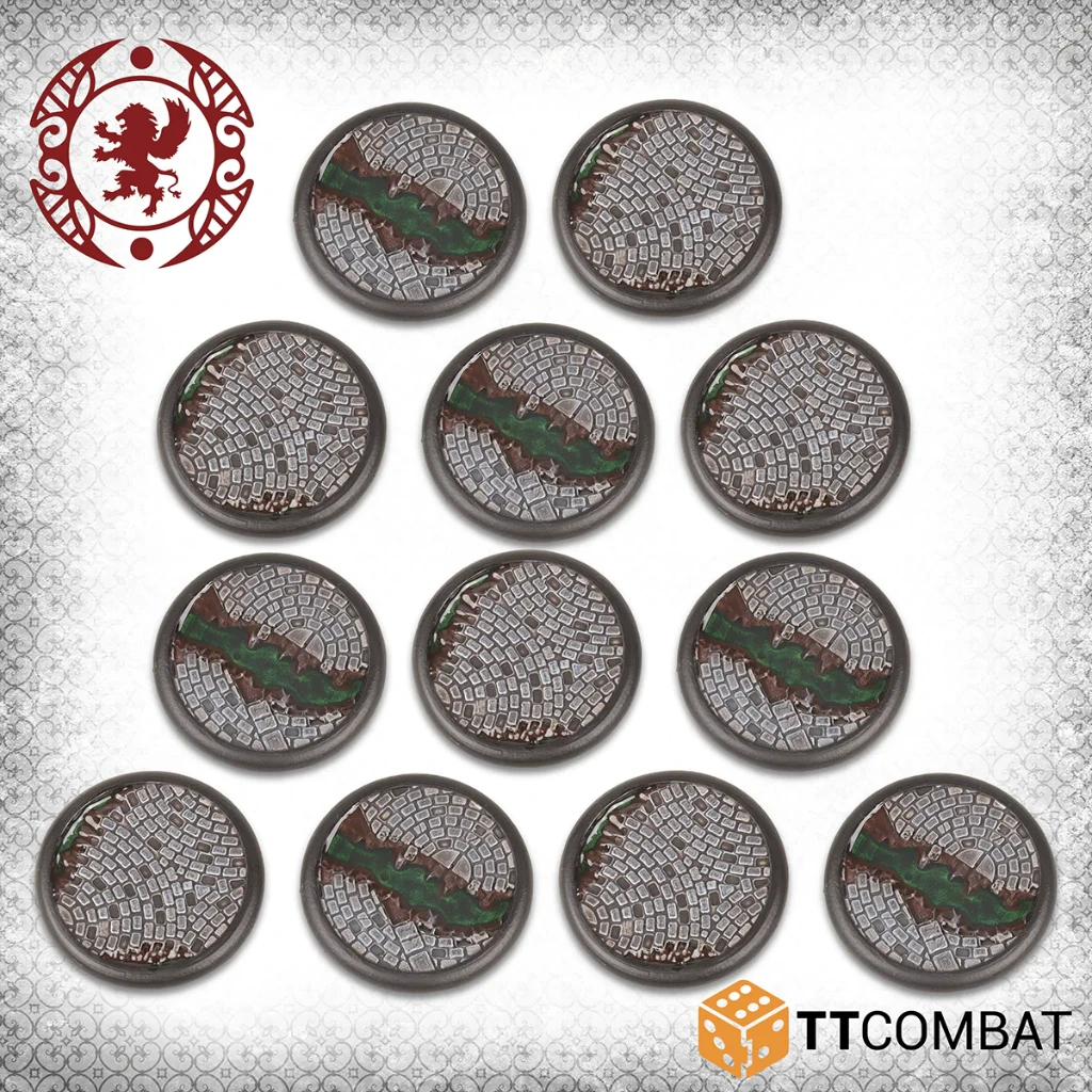 If you’d like to make your miniatures a little fancier, start from the ground up! This pack contains 12 detailed sunken plaza bases, so now your miniatures can match your gaming space!