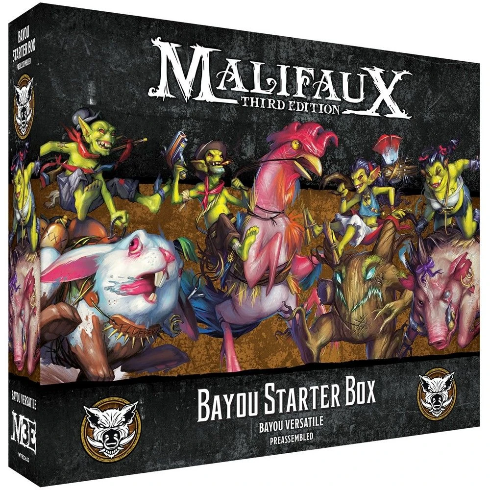 The Bayou Starter box will come with the 4 characters from the Bayou Bash board game, and will be compatible with both Malifaux and Bayou Bash! In addition to the miniatures and stat cards, the Bayou Starter will also come with its own Bayou-themed Fate Deck and measuring widget.