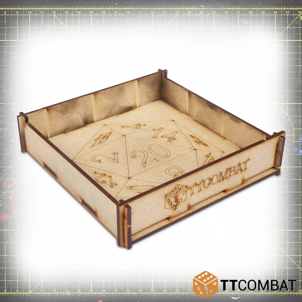 The Dice Tray is made from 3mm MDF, and is easy to put together. Model supplied unpainted and will require assembly. Can be flat packed. Stops dice from rolling off the table!