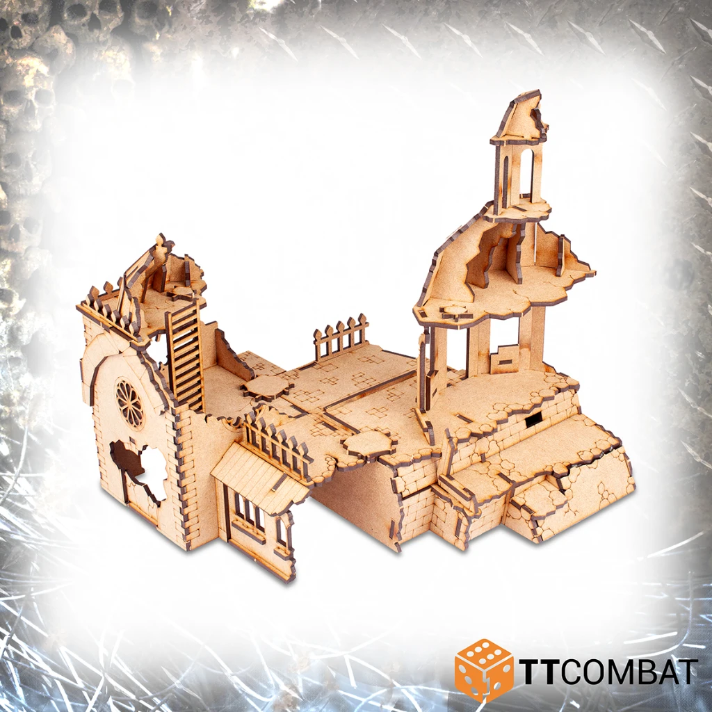 The Ruined Convent Cathedral is made from 3mm MDF, is easy to put together and looks great on the tabletop. Perfect scenery to use with sci-fi 28-35mm wargames.