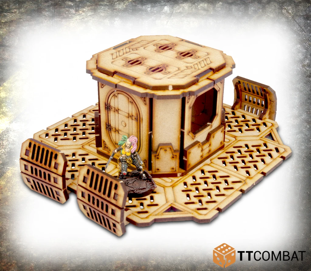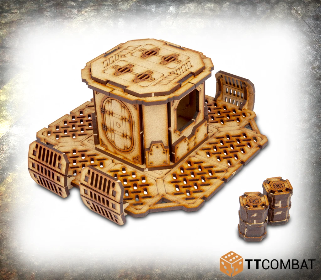 This kit comes with interchangeable Office and Grate section. At 7cm tall for the Vats and 2.5cm for the fans it’s perfect for 28-32mm scale gaming in any hive or otherwise apocalypticly ravaged world. Made from 3mm MDF, it’s easy to put together and looks great on the tabletop.