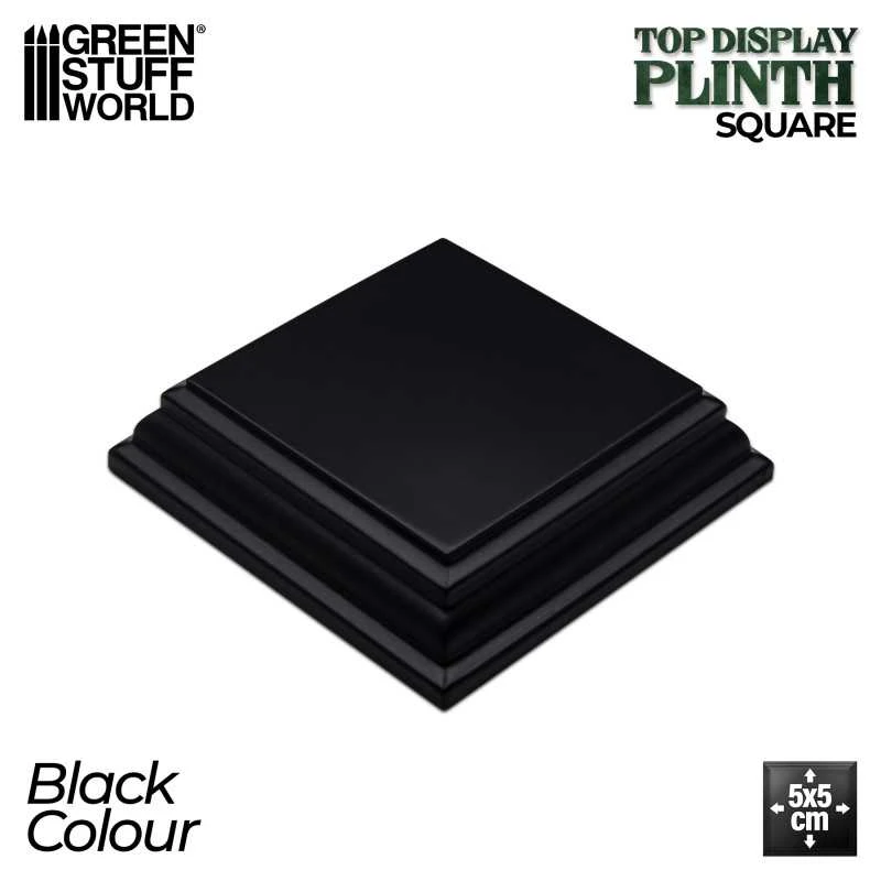 Square Top Display Plinth made of MDF wood colored Black with a lacquered finish, ideal for exhibiting your figurines. The base comes with a soft green baize bottom.