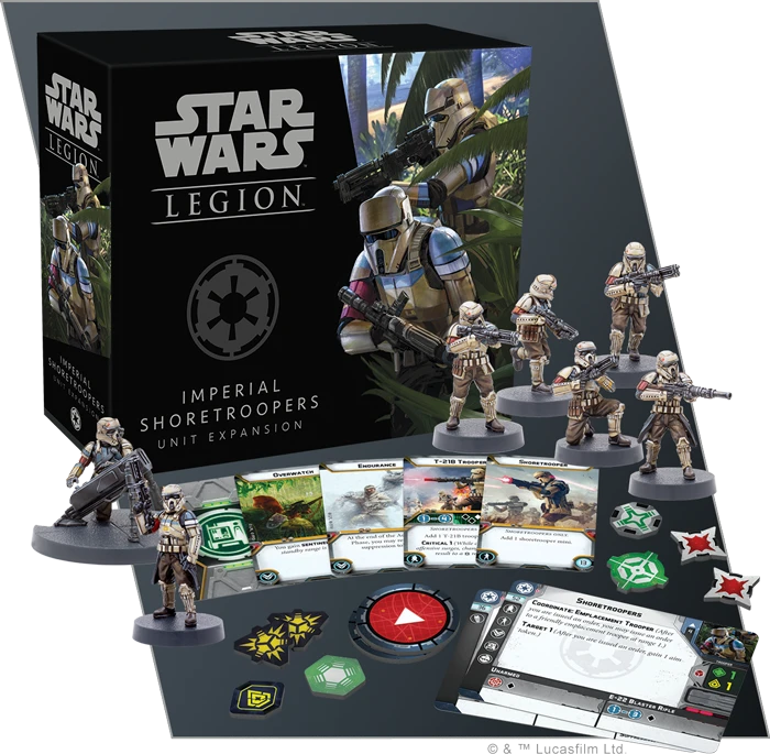 - Safeguard Imperial secrets with the seven unique unpainted miniatures you’ll find in this expansion! Five Shoretroopers carrying the powerful E-22 blaster rifle are ready to comb the beaches of Imperial occupied worlds in search of any intrusion. Meanwhile, a Shoretrooper with a T-21B targeting rifle can bring down enemies from a distance.