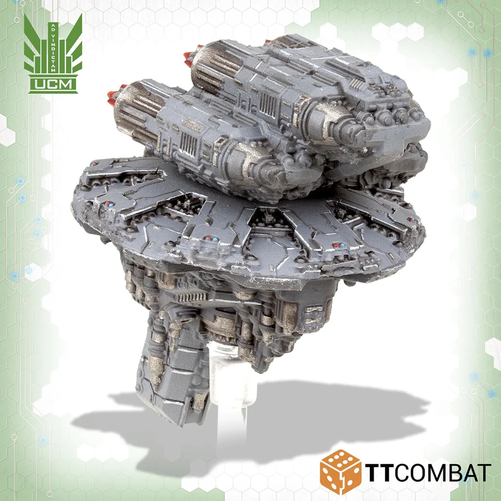 Rather then bringing arms to bear, these stations pack launch assets that can support the rest of the UCM fleet. The first variant builds the UCM Defence Hangar that can send Fighters and Bombers into the fray to counter enemy ace pilots. The second build replaces the launch bays in favour of a payload of standard UCM torpedoes.