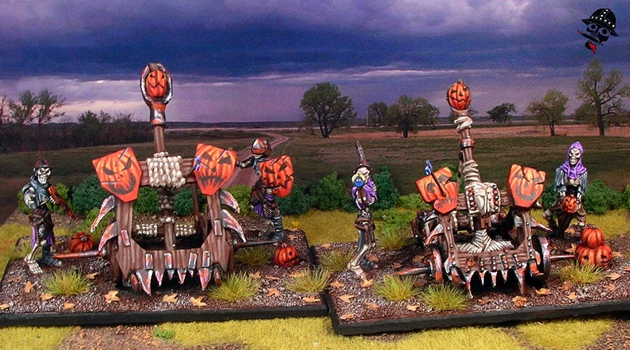 The Balefire Catapult is a horrific warmachine capable of blowing apart whole regiments of troops, inducing terror and great suffering at the same time. An arcane weapon from ages past, the Balefire Catapult flings a torrent of magical, rune inscribed skulls at the enemy, bringing much needed firepower to the ranks of the Undead.