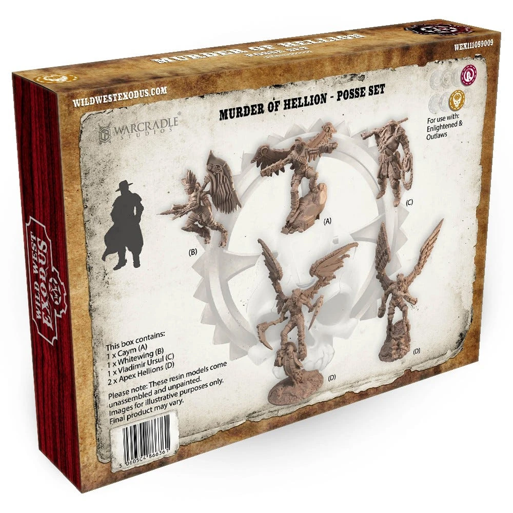 The Murder of Hellion Posse kit builds five multi-part resin miniatures;