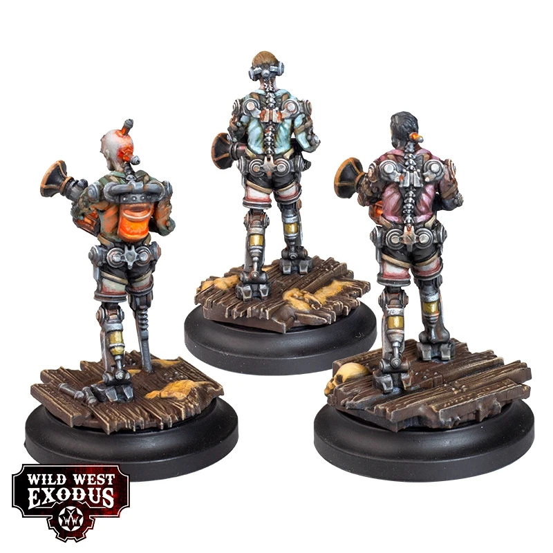 The Phonic Blaster Menials kit builds three multi-part plastic and resin miniatures;
